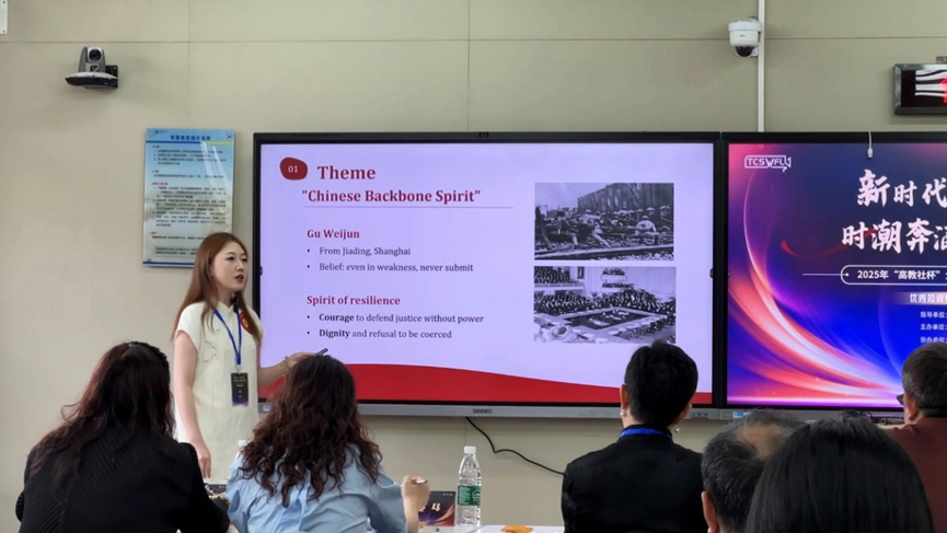 2025年9月20-21日,由中国英汉语比较研究会指导,南京大学、江汉大学主办,高等教育出版社协办的2025年“高教社杯”大学生“用外语讲好中国故事”优秀短视频现场交流活动在武汉江汉大学举行。上海师范大学天华学院语言文化学院英语专业学生兰岚团队(兰岚、周子欣、黄孝茜)的作品《Retrospect:The Diplomatic Backbone Emerging from Jiading's Ancient Town溯往昔:嘉定古镇走出的外交脊梁》在层层选拔中脱颖而出,荣获全国一等奖!