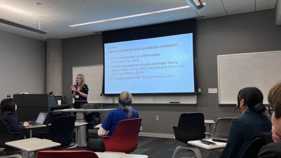 抵达北亚利桑那大学后不久,师生二人便迅速融入了当地的学术氛围。2025年9月26日,师生共同参加了在北亚利桑那大学举办的SLRF 2025(Second Language Research Forum 2025)国际学术会议。本届SLRF会议以“Elevating Perspectives in L2 Research”为主题,汇聚了全球第二语言研究领域的顶尖学者。作为访问学者,隗钟乐教师深入了解了国际前沿的二语习得理论与研究方法;李思璇同学也得以近距离接触国际学术动态,拓展了专业视野,为未来的学习和研究打下了坚实基础。参与国际会议的宝贵经历,使师生深刻体会到站在全球视角审视学术问题的意义。
