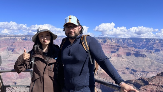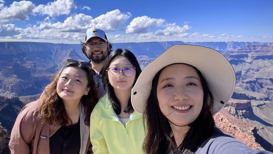 2025年10月12日,师生二人与北亚利桑那大学的教师们一同前往世界自然奇观美国大峡谷(Grand Canyon)。雄伟壮丽的自然景观令人震撼,更重要的是,这次活动为中美教师之间提供了一个轻松、友好、深度的交流空间,增进了彼此的了解和友谊。通过与当地师生的互动,师生二人对美国西部的自然历史和人文风貌有了更为直观和深刻的认识。