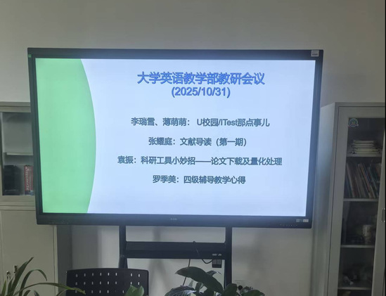 2025 年 10 月 31 日下午,明华楼 416 座无虚席,一场别开生面的大学英语教学部门教研活动在此热烈开展。李瑞雪、薄萌萌、张耀庭、袁振、罗季美五位老师依次登台,围绕不同主题展开精彩汇报,为在场师生带来了一场学术与教学的双重盛宴,有力推动了外语教育领域的交流与发展。